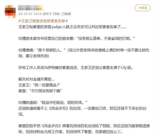 流出的录音里,王家卫的港普慢悠悠:“她的喜剧节奏会破坏腔调。